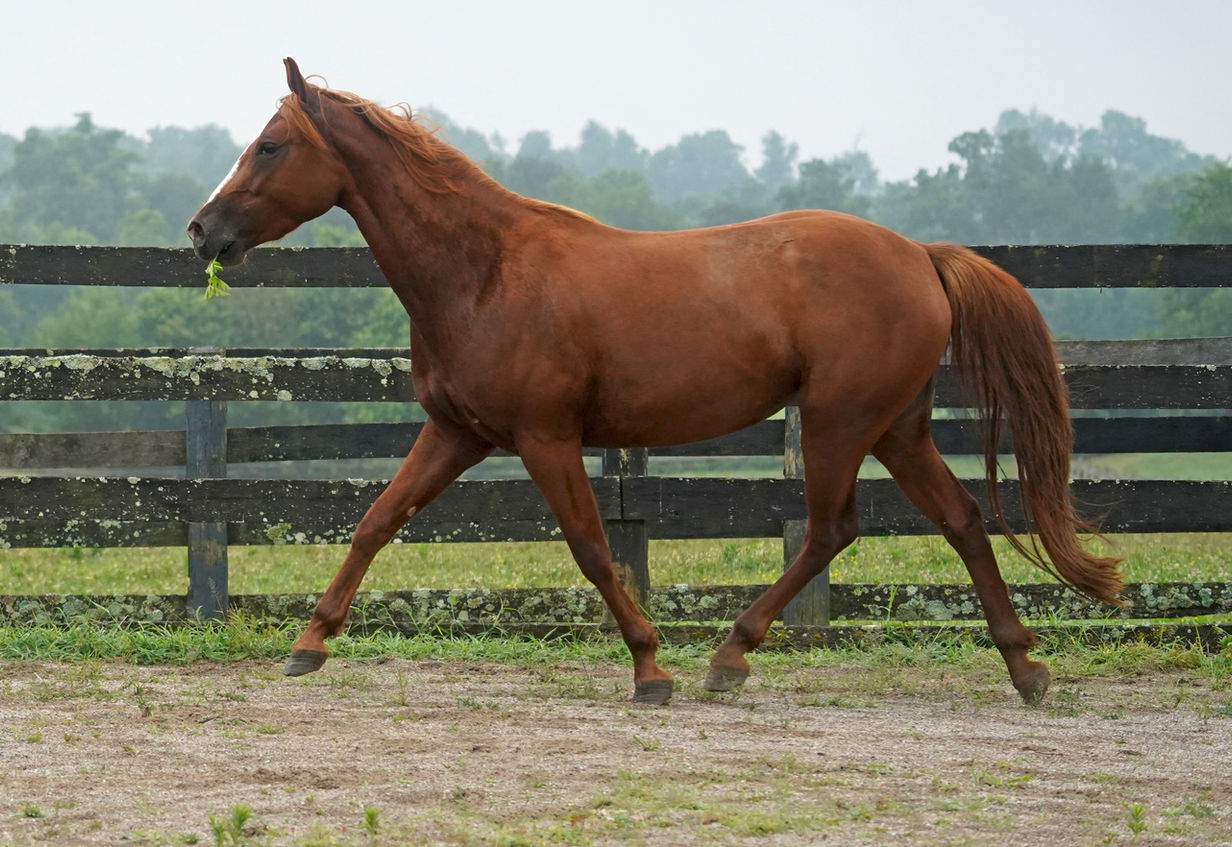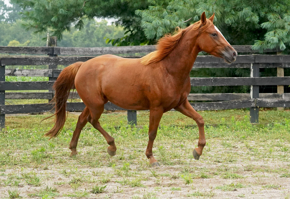 Every foal out of Gypsy Creme has been conformationally correct, highly competitive and showcased extreme talent. Her stallion son, Johnny Bobtail, is currently winning championships in ranch versatility and has competed in the 2021 World Quarter Horse Congress. Our chestnut filly is already proving her speed, catty movement and rate. She has an unequalled natural pure 3-beat lope that would make pleasure horses envious and the agility and speed of the best cutting horses. She is well-muscled, yet light on her feet. Curious, intelligent and loads of grit.