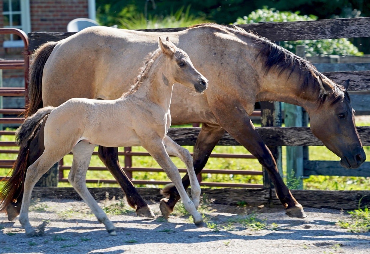 His dam is our favorite 100% NFQHA Foundation mare, Jaz Reina Del Sol (Queen of the Sun.) She literally was born-broke. Her first time under saddle resembled the aptitude and behavior of a nearly finished horse. Walk, Trot, Canter both directions, obstacles, tarps, riding out and even stood unwavering at the crack of a bull whip! In one week, she was working cows! Reina has unequalled temperament...until now! Reina is line-bred Poco Bueno featuring foundation greats such as Bains Showdown Dun, Poco Ojos Grande, Little Steel Dust, RF Tee J Steel Dust and Jackie Bee.