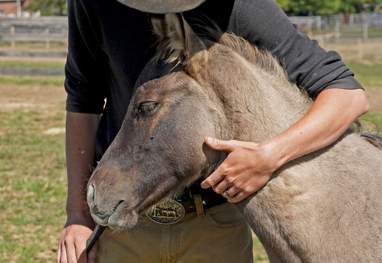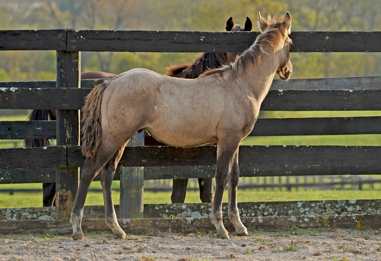 Brindle! Perfect 4H, kids or family horse. Reina Del Sol's colt is the born-broke type, just like his mama. From day one, he loves and expects personal interaction with people, always eager to be petted or groomed. He would make a great team penning and team sorting, roping or western dressage prospect. Great all-rounder.